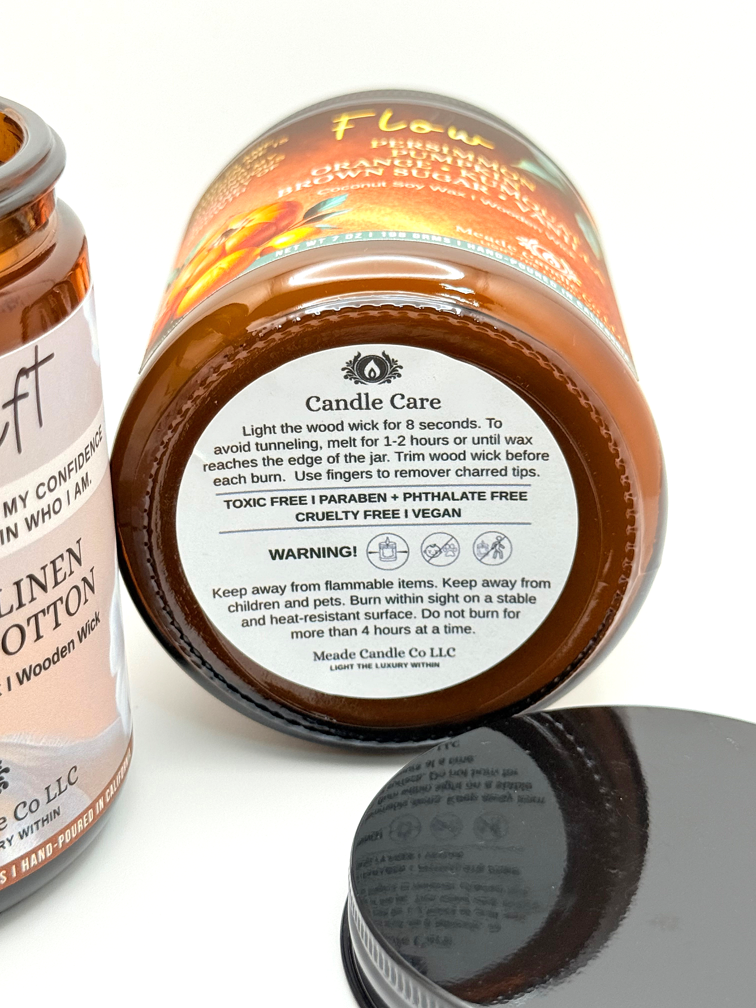 We pride ourselves on using clean, virgin coconut soy wax and sustainably sourced fragrances, ensuring purity in every flicker. Our candles are poured into elegant amber glass vessels that not only enhance your space but also serve as a beautiful reminder of the calm and clarity you deserve.